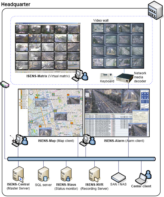 With ISENS, developers can design various kind of site configuration and can integrate legacy analog CCTV system into IP-suveillance system.